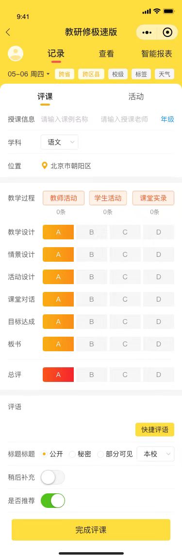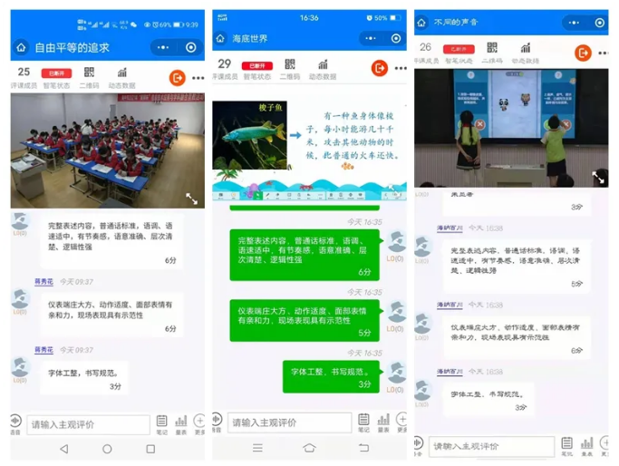 現(xiàn)場氣氛熱烈,老師們從發(fā)布課例,到開始評課,用快捷的內(nèi)置評價體系多角度立體解剖,或文字評語、圖片評語、拍照,邀請遠程教研專家點評課例,提煉本堂課優(yōu)缺點、打上特色標簽;查看評價報告和對比同堂課例,老師們迅速掌握了評課系統(tǒng)的操作,信息技術(shù)帶來的效率和數(shù)據(jù)留存,教研成果分享和固化的便捷。