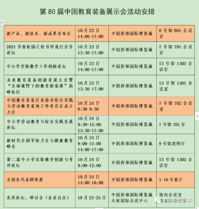 第80屆中國教育裝備展示會活動安排(一)