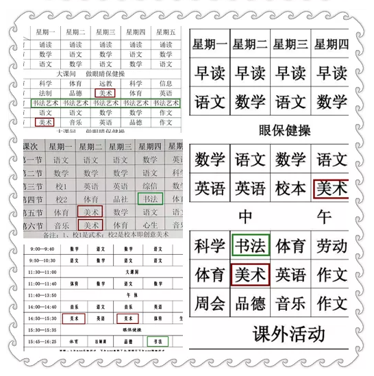 結果顯示:課表上書法和美術每周分別為1節(jié)和2節(jié)......