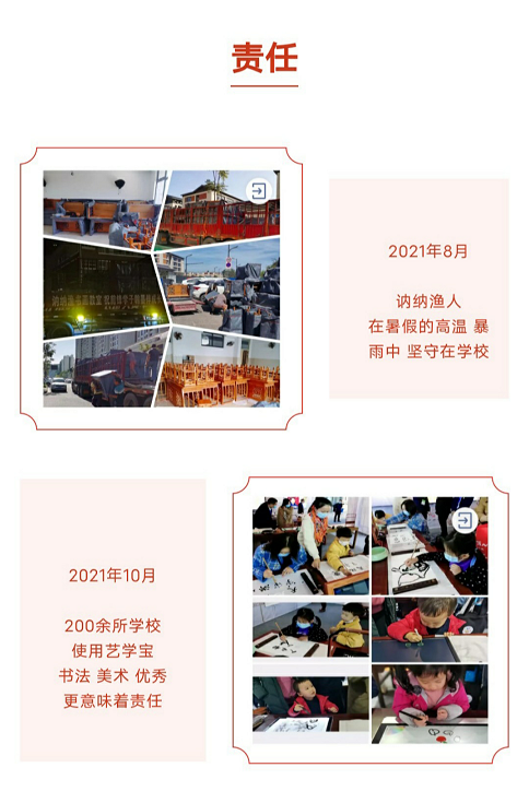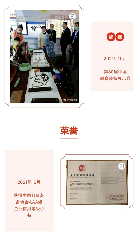 | 擁有自主開發(fā)的系列產(chǎn)品,涉及中國傳統(tǒng)文化書畫教室、老師成長和提升的教研產(chǎn)品、增賦減負(fù)備授課工具、提升優(yōu)質(zhì)資源均衡的結(jié)對課堂。自主研發(fā)產(chǎn)品:課堂評價-愛評課、美術(shù)教絡(luò)系統(tǒng)-藝學(xué)寶、數(shù)字臨摹書法教室-藝學(xué)寶、互動結(jié)對課堂、名師專遞課堂。配套硬件產(chǎn)品:藝板繪畫屏、藝學(xué)寶書法臨摹全貼合屏,產(chǎn)品優(yōu)勢:數(shù)據(jù)采集與運用、互聯(lián)網(wǎng)+等創(chuàng)新運用在教學(xué)和教研,助力英音美薄弱學(xué)科的師資水平提升和名師課堂發(fā)揮普惠作用。 |