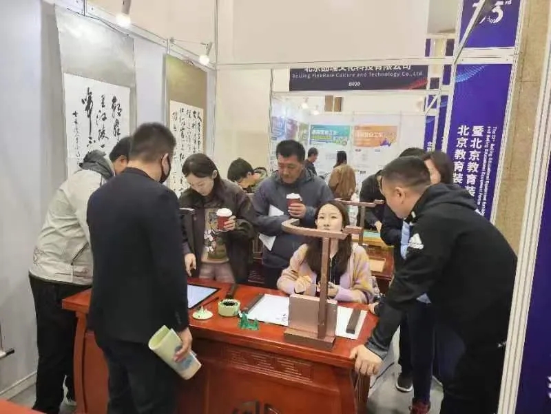 “教育數字化”是本屆展會的主題,龍美訥納漁致力于美育教育裝備研發多年,作為參展單位,此次展會我們展出了智慧書法教室、智慧美術教室、智慧沙畫教室、非遺手工教室四類美育教室數字化教育裝備,可滿足中小學及高校實訓室的美育課程教育教學需求。