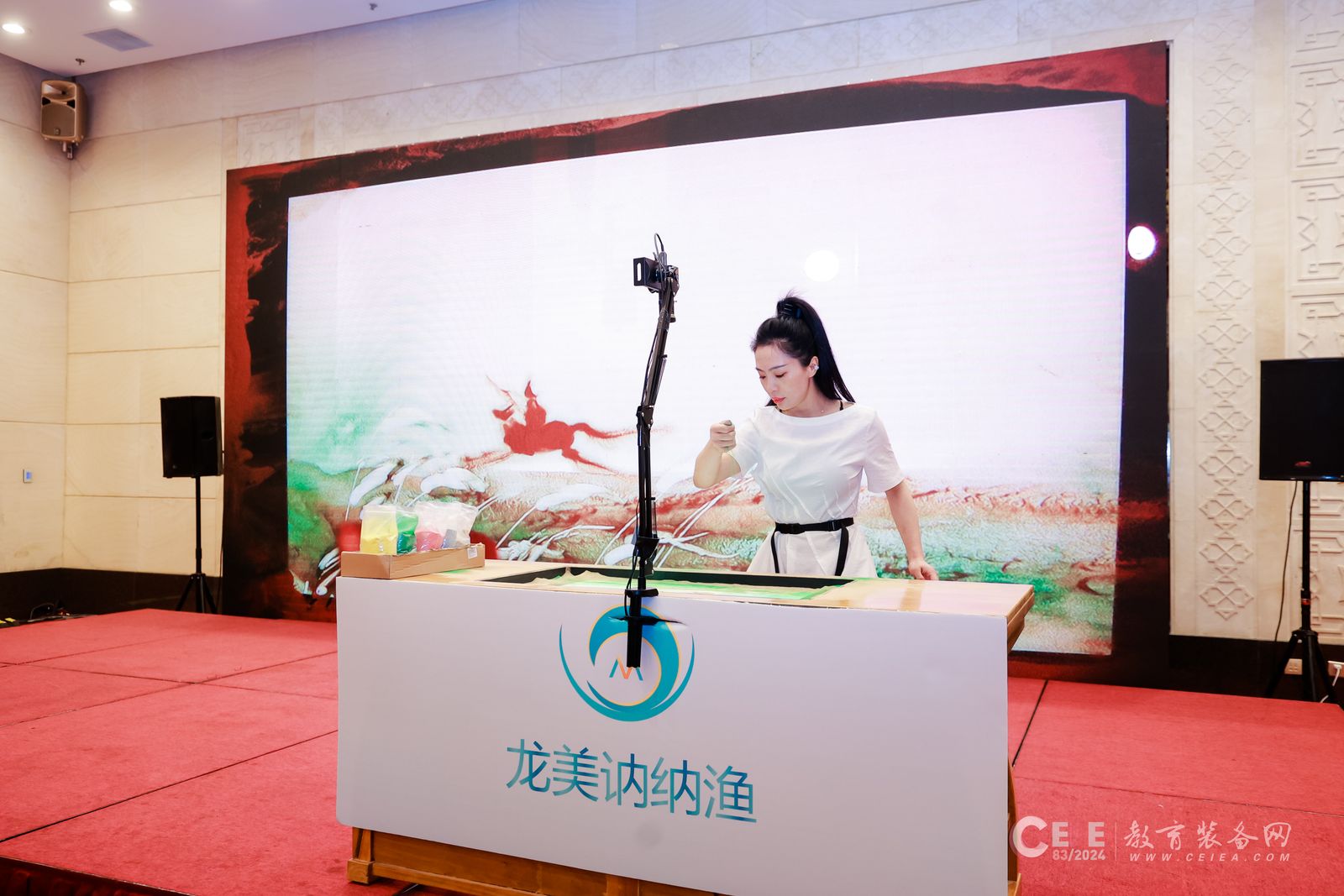 會上,北京龍美訥納漁科技有限公司受邀進行了沙畫表演,贏得了現場與會人員的熱烈歡迎與稱贊,智慧沙畫教室是由龍美訥納漁美術自主研發的沙畫表演教育裝備,智慧沙畫教室可為學生們帶來一次前所未有的藝術體驗。不僅配備了先進的技術設備,還融入了多元化的教學方法,使得沙畫教學變得更加生動有趣。