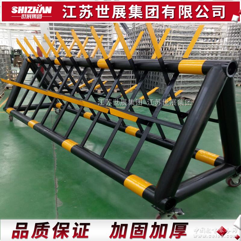 拒馬帶刺高度1.8m,兩刺之間距離1.2m,比如常規(guī)尺寸2米的,外尺寸是:2*1.2*1.8米