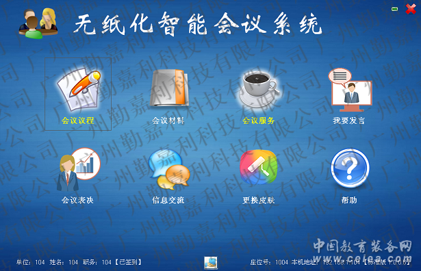 軟件含:服務器軟件、管理端控制軟件、用戶端軟件、大屏投影用戶端軟件,無紙化會議系統軟件功能 1,支持四路外部HDIM信號輸入 在會議使用過程中,需要使用外部筆記本時,在管理端隨時導入筆記本信號,讓與會者與筆記本同步顯示。 2,電腦一鍵開關機 在后臺管理端可控制所有電腦主機一鍵開啟和一鍵關機。開啟后,可對所有電腦終端全部重啟和全部關機,或者可以對會議中不需要使用的部分電腦進行選擇關機,節省資源。使會議效果最佳。 3,軟件重啟和關閉 在會議使用過程中,可選擇在會議結束后,對軟件進行關閉和重啟管理。 4,座位編排 在管理端座位編排界面,預先設定好每個參會人員的IP地址(最大支持256個IP),進行編號,輸入參會人員名字。可顯示參會人員參會狀態,簽到時間,進行統一管理。 5,參會人員 在管理端參會人員界面,可對即將要進行會議的所有參會人員:姓名,單位,職務等進行填寫。 6,議題管理 可在議題管理界面對即將要進行的會議主題名稱進行設定,logo設置,會議議程,相關會議資料進行選擇并上傳,支持多種格式的文件,可增加、修改、刪除會議議題。 7,會議安排 可在會議管理界面選定事先設置好的會議議題,編輯會議,可根據需要同時編輯多場會議,可增加、修改、刪除會議,設置會議簽到的時間,進行會議,一個會議內可添加多個議題。 8,會議簽到 在會議安排界面,設置好會議開始時間,點擊開始按鈕,每臺終端會出現簽到界面,管理端可編輯簽到界面的背景圖片或顏色、字體格式、字體的大小、字體顏色、簽到按鈕的顏色字體等、簽到界面的布局等,會議端點擊簽到按鈕后,簽到結果會在管理端顯示出來。 9,會議表決 無紙化會議投票表決分為:記名投票和不記名投票。不記名投票會以圖表的方式呈現,記名投票會以表格方式記錄,同時可以保持在桌面。 10,信息交流 在客戶端進入信息交流界面,可以與管理端進行文字交流,也可以在公共信息內交流,管理端有禁止或允許本會議功能的權限。 11,更換皮膚 在客戶端可以更換皮膚,本軟件有五套備用皮膚。 12,會議幫助 在客戶端及管理端均有會議幫助,在不了解本軟件的情況下,可以進入電子版的WORD文檔進行學習。 13,監視器 通過后臺管理端,進入監視器界面。對會議所有終端進行實時動態監控管理。每臺客戶端的界面都會顯示在后臺屏幕上。 14,允許發言 當客戶端有參會人員需要發言,點擊軟件界面中我要發言按鈕,管理端會出現提示,經管理人員允許后,方可進行發言,允許發言后,所有客戶端同步同屏到發言人的電腦畫面,客戶端可以隨時退出及返回同屏。 15,會議通知 可在會議開始前設定好在參會時需要主要的事項以及相關的重要會議通知等,通知內容會以輪回滾動的狀態顯示在每個會議客戶端上。 16,強制同屏 在所有客戶端中選定一臺,實現其他客戶端的畫面與已選定的客戶端保持一致。可支持文件,視頻等同步播放。 17,會議保密 會議結束后,所有會議資料只要不刪除議題名稱可保存,下次可以繼續上次開會議程。 18,會議批注 可在會議文件上進行批注、圈劃,批注內容可保存。 19,會議服務 參會人員可依據自己的需要向會議管理人員發出請求服務,可呼叫:礦泉水、添茶水、筆、紙、計算器等 20,演示模式 當會議比較簡單時,可演示模式,客戶端電腦會自動同屏到管理端(強制同屏,客戶端鍵鼠都不可以用,只能看內容)。 21,會議模式 會議模式下有簡易會議、正式簽到會議、正式會議,簡易會議不需要編輯參會人員的姓名,單位,職務,編輯好會議就可直接進入會議;正式簽到會議需要編輯好參會人員的姓名,單位,職務等信息,在編輯會議的界面安排座位,開始會議之后,由客戶端簽到方可進入會議;正式會議同樣需要編輯參會人員的姓名,單位,職務等信息,增加完成后不需要簽到便可進行會議; 22,支持雙屏顯示 支持雙屏顯示,在正屏+背屏的雙屏升降一體機上,除了讓電腦顯示屏的正屏顯示外,背屏可以顯示軟件里直接編制的人員名字等; 23,實現與會者和與會者之間點對點同屏,在會場需要的時候可以通過管理端指定與會者之點對點同屏或參會者與大屏或投影點對點同屏 24,電子白板:支持個人使用與交互使用,支持多人同時共享在同一白板上書畫,支持白板存檔、載入,支持將白板內容同步到投影儀或大屏。