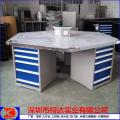 主要產品: 工作臺(六工位鉗工臺、四工位鉗工臺、雙邊鉗工臺、技校實訓臺、職校培訓臺、學校教學桌等)