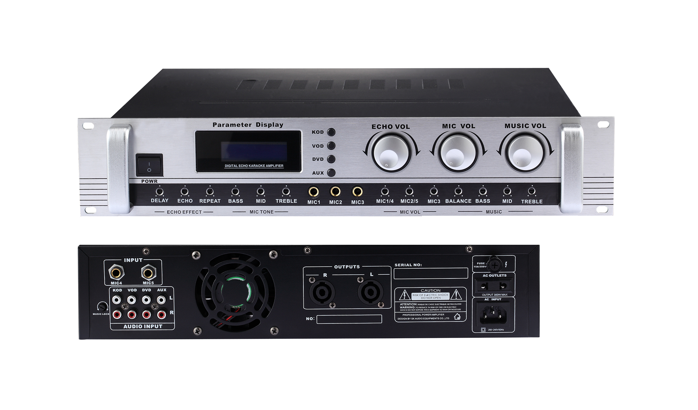 產(chǎn)品詳細介紹1、多種DSP卡拉OK演唱模式、4種音樂DSP預(yù)設(shè)模式可供選擇,帶卡拉OK激勵效果,單片機控制,性能穩(wěn)定可靠。 2、藍色背光LCD液晶顯示調(diào)節(jié)參數(shù)LED專業(yè)顯示屏專業(yè)級數(shù)碼回聲電路,使人聲更加豐富自然。 3、整體設(shè)計根據(jù)卡商業(yè)使用要求,其音量、音色及效果采用隱藏式調(diào)節(jié),保證工作可靠。 4、強制冷風(fēng)扇加強本機的散熱,滿足長時間工作。 5、★前后扳均設(shè)有麥克風(fēng)輸入插孔,從整體美觀到工作安裝都極為方便。 6、★適合KTV包房、多媒體教室、會議室使用。 7、輸出功率:2×200W |