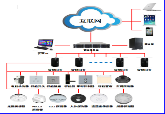 遠程管理: 手機、電腦遠程監看設備狀態,遠程單獨控制設備、遠程批量管理設備 定時管理: 根據定時管理策略,實現設備的定時管理和時序管理 場景化管理: 根據場景化管理策略,實現設備的場景管理,如“上課模式” 聯動控制: 根據聯動管理策略,實現設備的智能化管理,如恒溫環境、恒亮度環境 區域管理: 根據區域管理策略,實現設備的區域管理,如宿舍樓統一關燈 APP管理 : 可定制APP,實現移動端管理