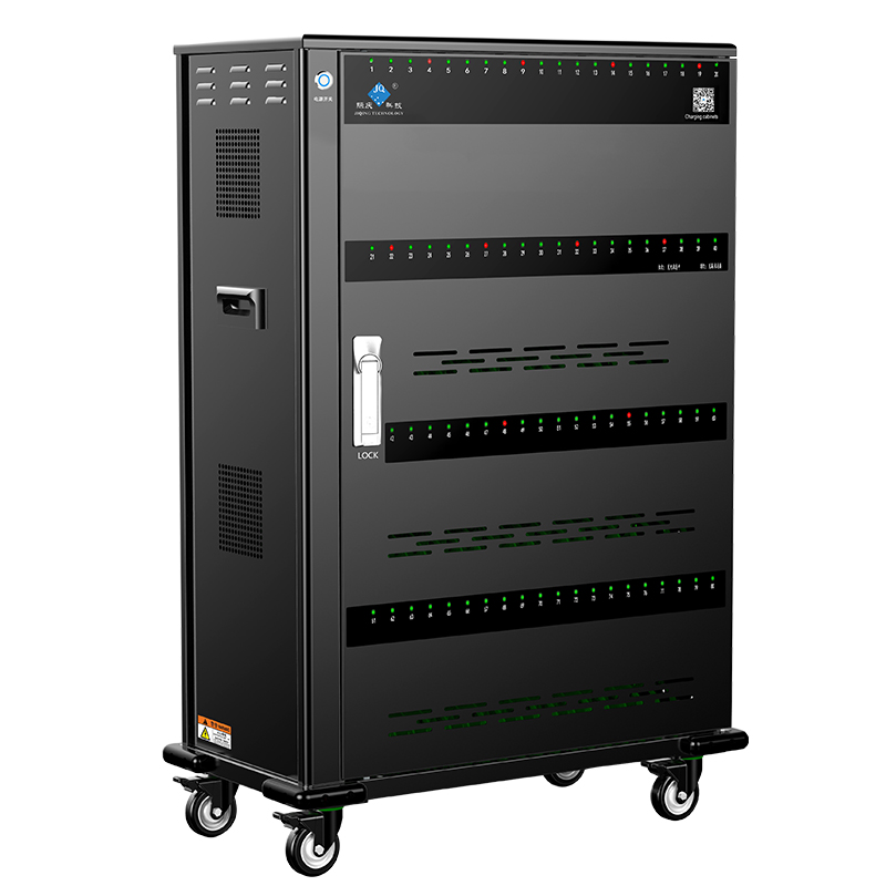 結構參數: 1、★四層式全黑每層16/20工位綠色ABS隔位設計,帶鎖前單開門,左側艙為電源管控封閉區;外形尺寸≤596/709*1061*372mm工位容積320*200*25(mm) 2、★雙側ABS工程提手,頂邊圓弧(≥R10)設計,四角加裝凸高22mm軟塑防撞角,4個2.5寸剎車腳輪(高度105mm); 3、★門板有對應內USB口數位標識的數位標識,前門門板與側板對流孔通風排熱設計;