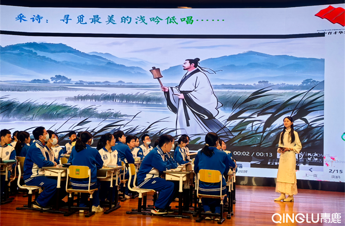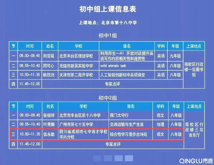 本次現(xiàn)場展示的32節(jié)課例,從全國推送的412節(jié)課例中遴選出來。四川省成都市七中育才學校華興分校伍永勤老師帶來的《綜合性學習漫步古詩苑》展示課是四川省唯一的一節(jié)初中展示課。課程融合了智能紙筆技術、AI大模型等工具賦能語文創(chuàng)新教學。