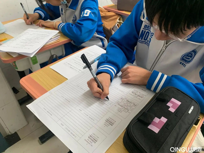 課前,伍老師通過青鹿智慧紙筆系統(tǒng)準備了導學單,讓同學們自選其中一首古詩進行鑒賞,并使用智能筆撰寫賞析內容。老師通過系統(tǒng)分析,提前了解學生在古詩鑒賞中的薄弱點,如角度單一、情感解讀淺層,以便老師針對性設計多角度賞析教學目標。