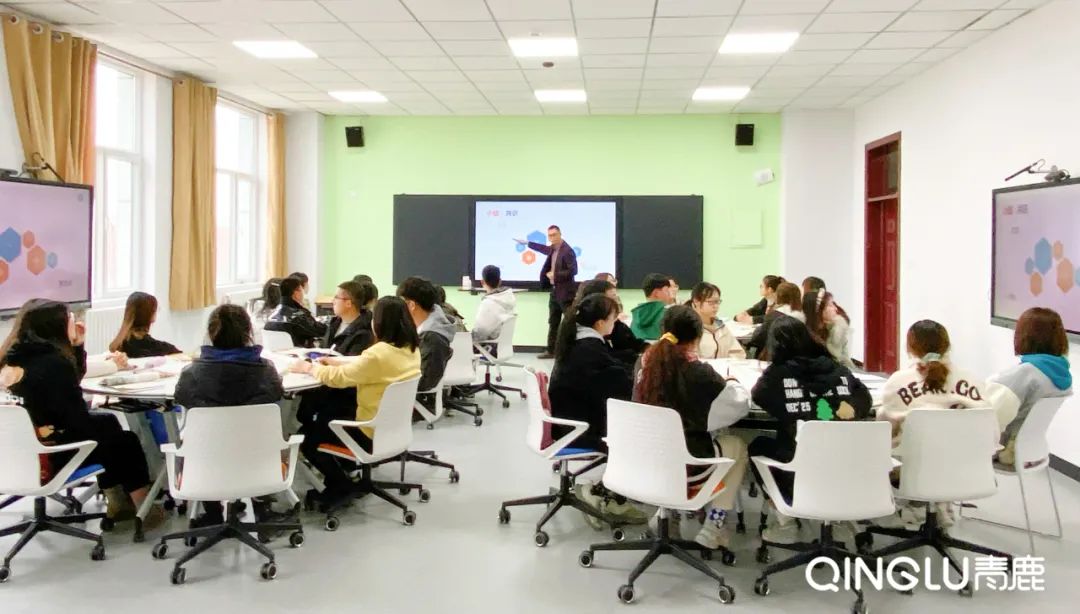 伊犁師范大學師范生綜合技能實訓中心建設了多間研討互動智慧教室,不同的教室配備了不同數量的U型拼接桌或圓形拼接桌,支持小組研討環境的實現,提高研討效率,可用于各種類型、規模的教學活動。