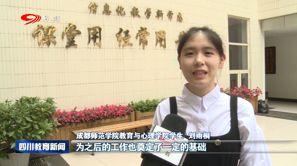 在接受四川廣播電視臺采訪時,成都師范學(xué)院教育與心理學(xué)院學(xué)生劉雨桐表示:“通過這次比賽,我們對信息化技能在教育教學(xué)中的應(yīng)用有了深刻的了解,以學(xué)促練、以學(xué)促教,為之后的工作也奠定了一定的基礎(chǔ)。”