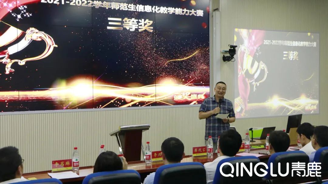 在頒獎典禮上,來自四川天府新區(qū)教育科學(xué)研究院的楊彤副院長對本次比賽給予了高度評價,他認(rèn)為參賽同學(xué)在教學(xué)設(shè)計、組織策略、技術(shù)應(yīng)用等多個方面展現(xiàn)出了較高水平,符合國家在新課標(biāo)背景下培養(yǎng)學(xué)生核心素養(yǎng)的新要求,比賽的舉辦能有效推動師范生信息化教學(xué)能力提升,培養(yǎng)真正適合基礎(chǔ)教育要求的未來教師。