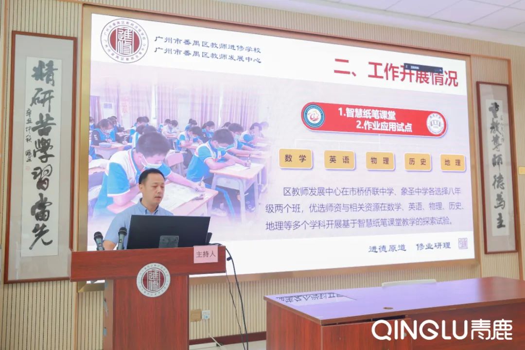 活動以“融樂智慧,賦能提質(zhì)”雙校“雙減”教師成長的故事紀(jì)錄片開場,介紹了青小鹿智慧紙筆的應(yīng)用情況和市橋僑聯(lián)中學(xué)、市橋象圣中學(xué)雙校“雙減”的工作舉措,從一線教師、學(xué)生角度敘述智慧紙筆技術(shù)給教與學(xué)來帶的積極變化。