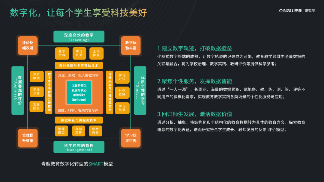 作為教育數(shù)字化創(chuàng)新產(chǎn)品與服務(wù)提供商,青鹿將聚焦“建立數(shù)字軌跡,打破數(shù)據(jù)壁壘”“聚焦個性服務(wù),發(fā)揮數(shù)據(jù)智能”“回歸師生發(fā)展,激活數(shù)據(jù)價值”目標(biāo)持續(xù)深耕,讓師生享受科技美好。青鹿期待與更多教育界同仁們加強合作交流,共同探索數(shù)字化教育教學(xué)的更優(yōu)實踐,切實助力教育數(shù)字化轉(zhuǎn)型。