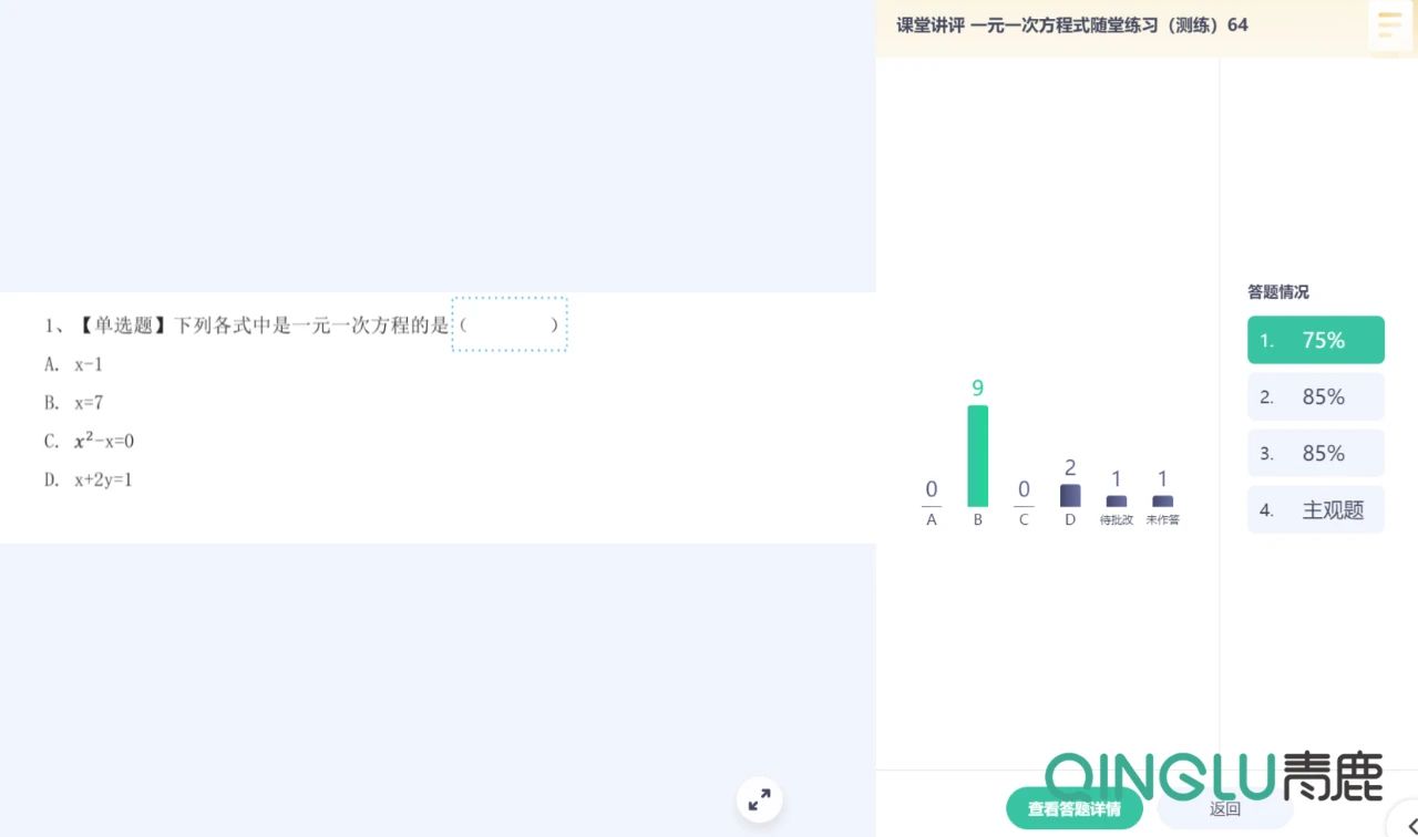 教師可以選擇對比或者隨機挑選某個學(xué)生的答案進(jìn)行點評,能夠更直觀地了解學(xué)生的學(xué)習(xí)情況,并通過及時的反饋和點評,為學(xué)生提供個性化的學(xué)習(xí)指導(dǎo)。