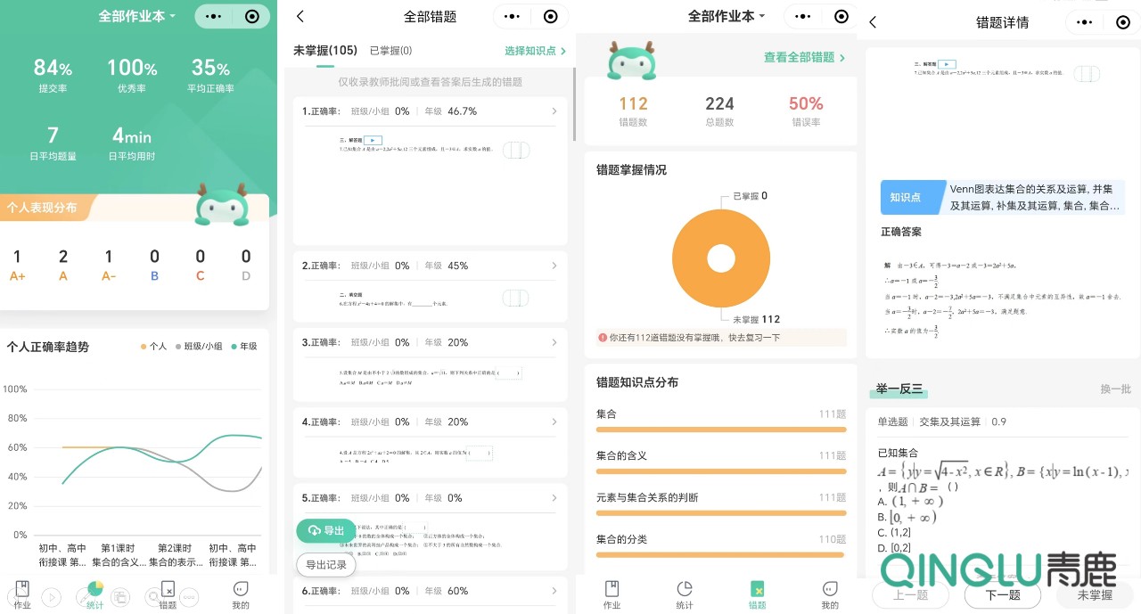 青鹿智慧作業能夠實現錯題自動歸集,有助于為學生提供精準的補償性訓練,有效避免機械、重復性作業負擔。