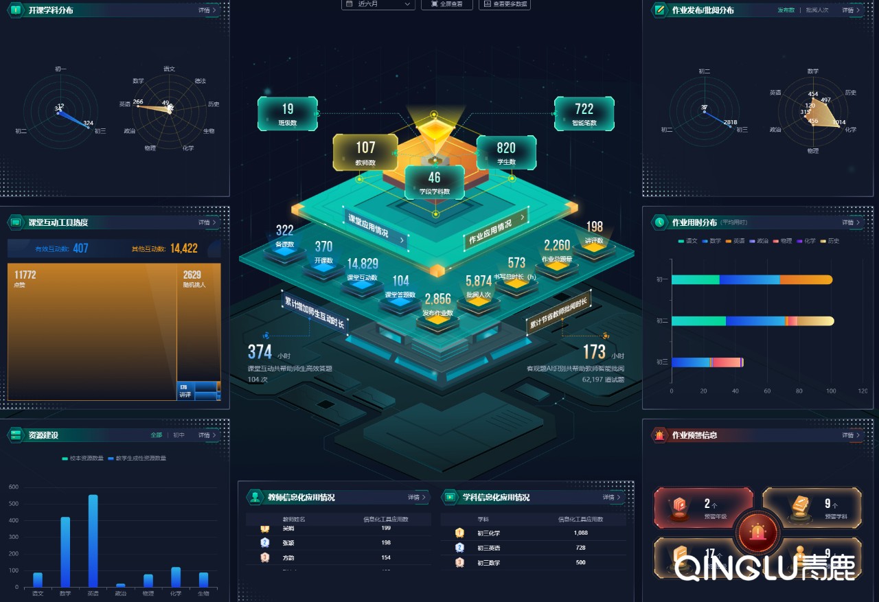 青鹿智慧作業可提供區域作業大數據看板,全樣本地評價區域作業的開展情況,基于數據進行全程動態監管,助力區域實現數據支撐作業治理的決策、執行、監管和評估全過程,形成“用數而思、因數而定、隨數而行”的數據驅動治理模式。