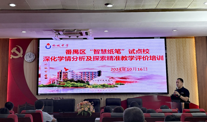 2024年10月16日上午,由番禺區(qū)教師進修學校(番禺區(qū)教師發(fā)展中心)主辦的番禺區(qū)“智慧紙筆”試點校深化學情分析及探索精準教學評價培訓在番禺區(qū)市橋橋城中學順利舉辦。培訓旨在加強番禺區(qū)“智慧紙筆”試點校的應用,充分利用人工智能和大數(shù)據(jù)技術,深挖應用數(shù)據(jù)及分析學生學情,賦能教師課堂教學,探索開展基于信息技術的精準教學評價,基于精準評價結果形成教學質量診斷與改進長效機制,促進番禺區(qū)“融·樂”課堂深化評價改革。