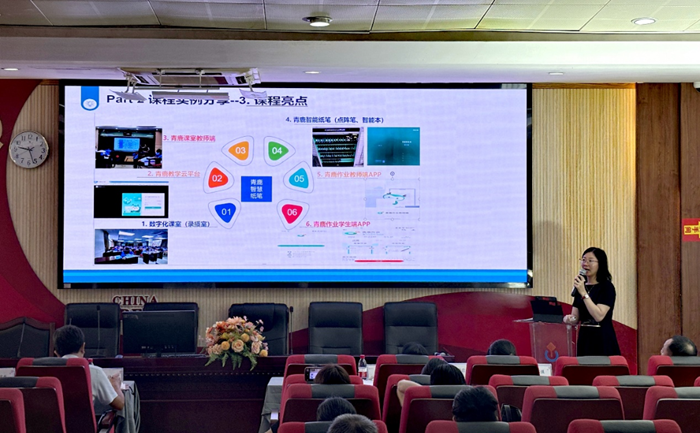 番禺區(qū)市橋橋城中學歐陽玉香老師以《智慧紙筆系統(tǒng)精準賦能課堂》為題進行分享。歐陽老師將智慧紙筆技術與典型教學環(huán)節(jié)緊密結合,技術應用貫穿“前測/預習檢測”“合作學習/實驗探究”“針對性檢測”“練習鞏固”“課后回顧”全過程,通過精準數(shù)據(jù)反饋、以評促教的教學策略,更好地實現(xiàn)了因材施教、以生為本的教育效果。