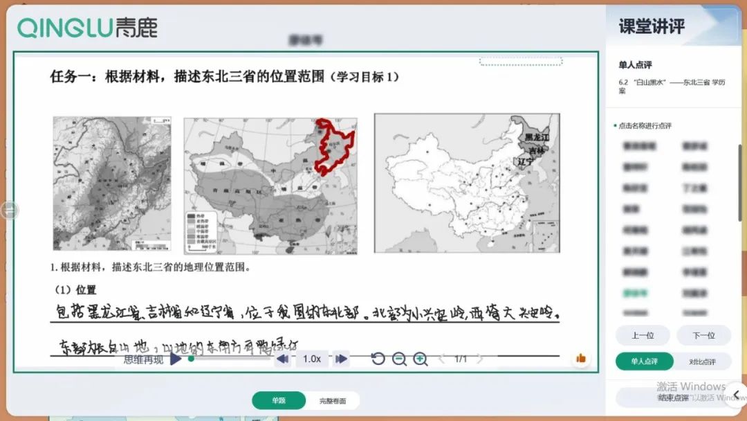 今天,為大家帶來的是青鹿智慧紙筆的八年級地理應用課例——《白山黑水”——東北三省》的介紹。