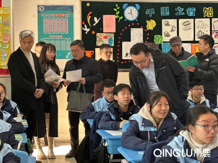2024年12月17日上午江蘇省智慧教育樣板區建設中期專項調研組就太倉市陸渡中學智慧教育開展情況進行實地考察和指導,蘇州市電化教育館原館長顧瑞華、江蘇科技大學信息化建設與管理辦公室主任韓斌、鎮江市教育信息化中心主任張國俊蒞臨現場,太倉市教育局基礎教育科、信息化中心、教師發展中心、督導與監測中心、裝備中心負責人陪同參觀。
