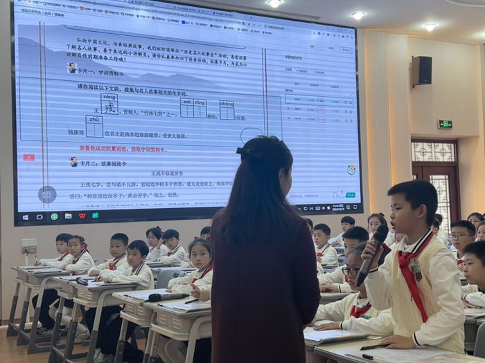 晉江市第四實驗小學邱晨老師以“融入智能化學習工具,助推課堂提質增效”為主題,融合青鹿智慧紙筆技術進行四年級上冊語文《王戎不取道旁李》課例展示。