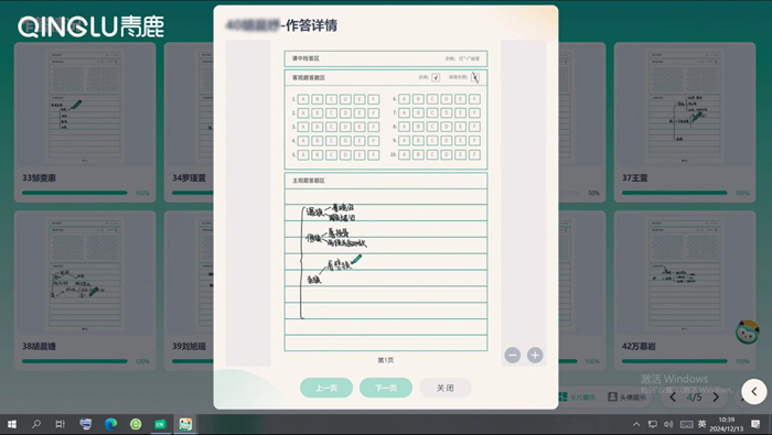 在課堂導入環節,劉老師運用青鹿智慧紙筆系統下發了“課堂測驗”,以檢測學生在課前預習中對文言文生字詞的掌握情況,通過系統反饋實時查看學生的作答進度與詳情,合理把控課堂教學節奏。