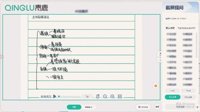 在課堂活動探究中,劉老師設置了繪制思維導圖梳理故事情節的學習活動,借助青鹿智慧紙筆系統實時采集學生的思維導圖繪制過程及呈現結果。