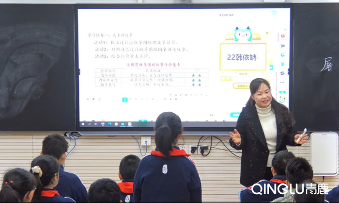 在學生繪制完成后,劉老師隨機挑選某位學生的作答內容進行展示,邀請學生根據思維導圖完成本文故事講解,實現了課堂生成性內容的直觀展示,促進了課堂交互效率的提升。