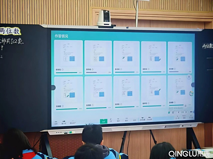 課前,張雨晴老師針對本堂數(shù)學課知識點設計學習單。課堂上,通過青鹿智慧紙筆系統(tǒng)下發(fā)學習任務,學生使用智能筆在學習單上書寫。張老師可通過教師大屏實時查看學生作答情況,也可借助系統(tǒng)的思維再現(xiàn)功能回溯學生解題過程,掌握學生的解題思維。張老師通過對比展示、挑選典型案例講解,拓寬學生思維,精準定位認知盲區(qū),讓講解直擊痛點,實現(xiàn)“數(shù)據(jù)驅動”的靶向教學。