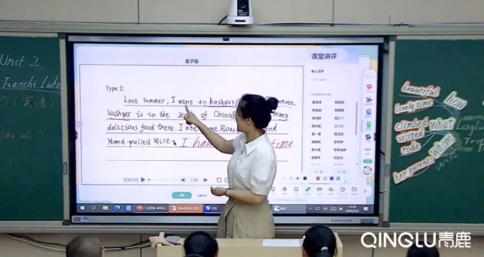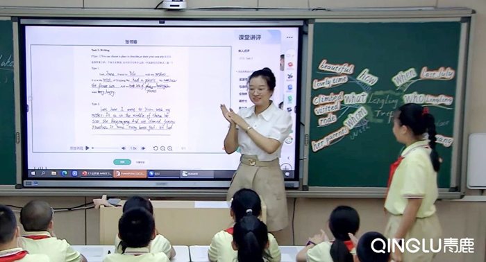 在五年級的《M6U2 She visited the Tianchi Lake》的英語課上,劉老師結合青鹿智慧紙筆系統,帶來了一節精彩的教學示范課。