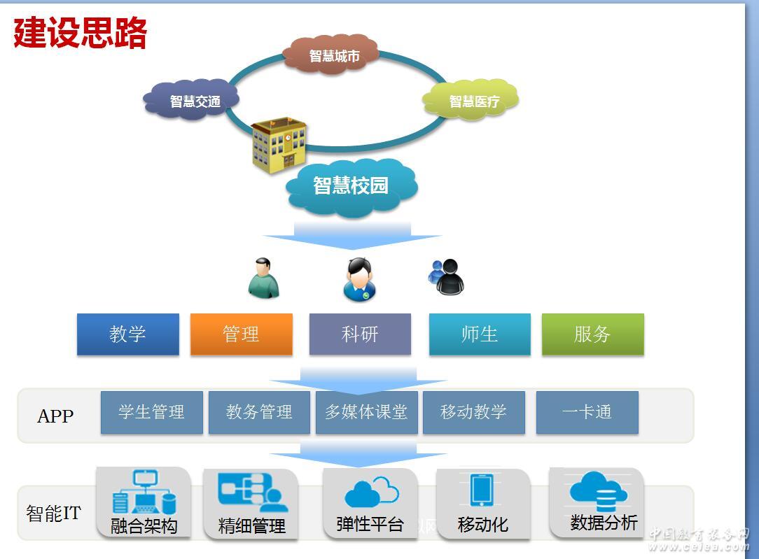 產品詳細介紹“智慧校園信息系統”提供包括校長、班主任、老師、學生、家長等5個角色使用,每個角色都有自己的特色功能。集平安短信、教學管理、學生與家長管理、在線考試、在線教學資源為一體,涵蓋了考勤、教學、考試、家校互動、網上教學等多方面內容。
