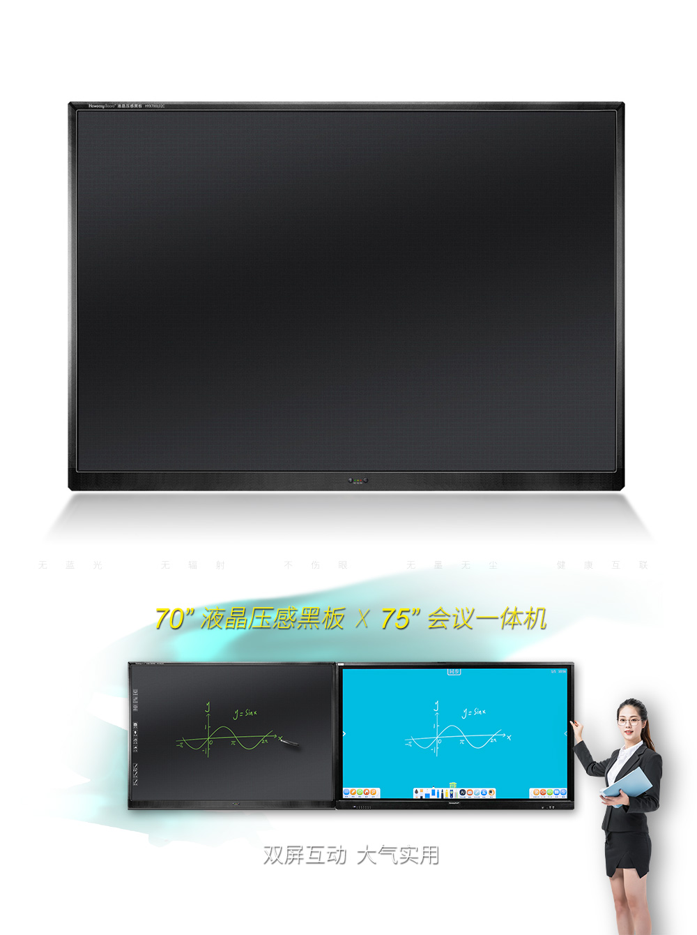 70寸液晶壓感黑板是為更好滿足智慧教培、智慧辦公等應用場景的書寫需求,我司集中力量成功打造的新品,適用于高教、職教和普教環境。