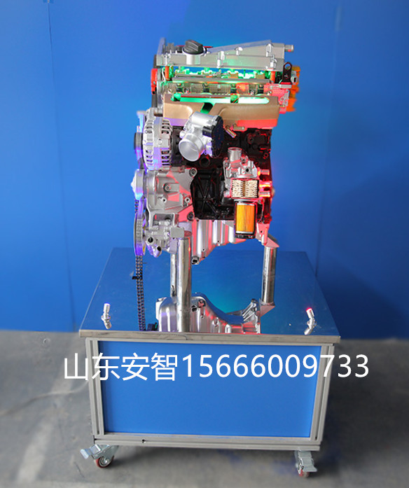 產品詳細介紹一、產品要求 該設備采用(某款)電控發動機總成進行剖面處理,各部件齊全,剖面位置合理,能全面展示汽油發動機內外部結構和部件的運動情況,適用于汽油發動機原理和機械機構的教學。 二、功能特點 1.采用原廠汽油發動機實物總成進行機構切剖,充分展示汽油發動機機構部分的內外結構。 2.對發動機各機械剖面采用不同顏色的油漆進行噴涂。 3.由三相齒輪減速感應電機帶動汽油發動機曲軸做低速運轉,真實演示汽油發動機內部機械部件的運動過程。 4.移動臺架采用了高強度的鋼結構焊接,表面經噴涂工藝處理。移動臺架底部帶有自鎖腳輪裝置,可移動式,方便教學。 |