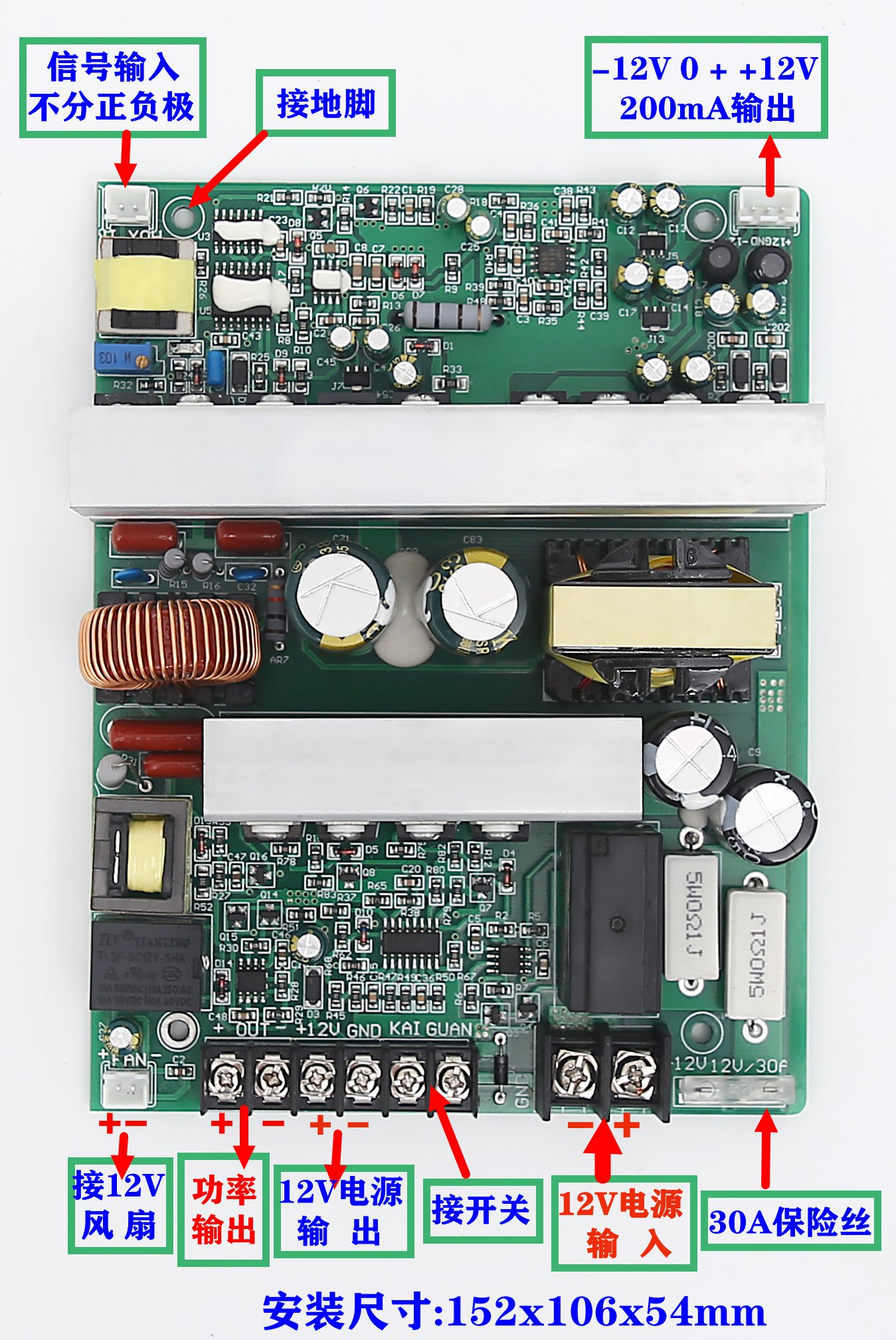 產品詳細介紹廣場舞數字功放模塊 ,公司設計、開發和批量生產并出口的成熟、穩定、可靠的2019版第六代產品。采用直流供電,應用DC-DC升壓技術。體積小、重量輕、功率大。性能穩定、音質清晰、信噪比高、失真度低,低溫工作等特點。其功能可根據整機廠的要求設計生產,是開發新產品、升級產品、節約開發周期的理想配套產品。 特性指標:       信 號 輸 入:0 dB (0.77V) 效  率:89 %       額定輸出功率:50W/100W/150W/200W/250W/300W可根據需要選擇        定 阻  輸 出:4-16Ω         供 電  電 壓:直流12V/24V/36V/48V56V/68V/80V可根據需要選擇電壓        頻         寬:20Hz-20KHz        信   噪   比:87 db        失    真   度: 1KHz  0.1%  100w4-8Ω 輸入、輸出接口: 溫度保護: 當散熱器溫度達到90度時,保護電路工作,功放沒有輸出。