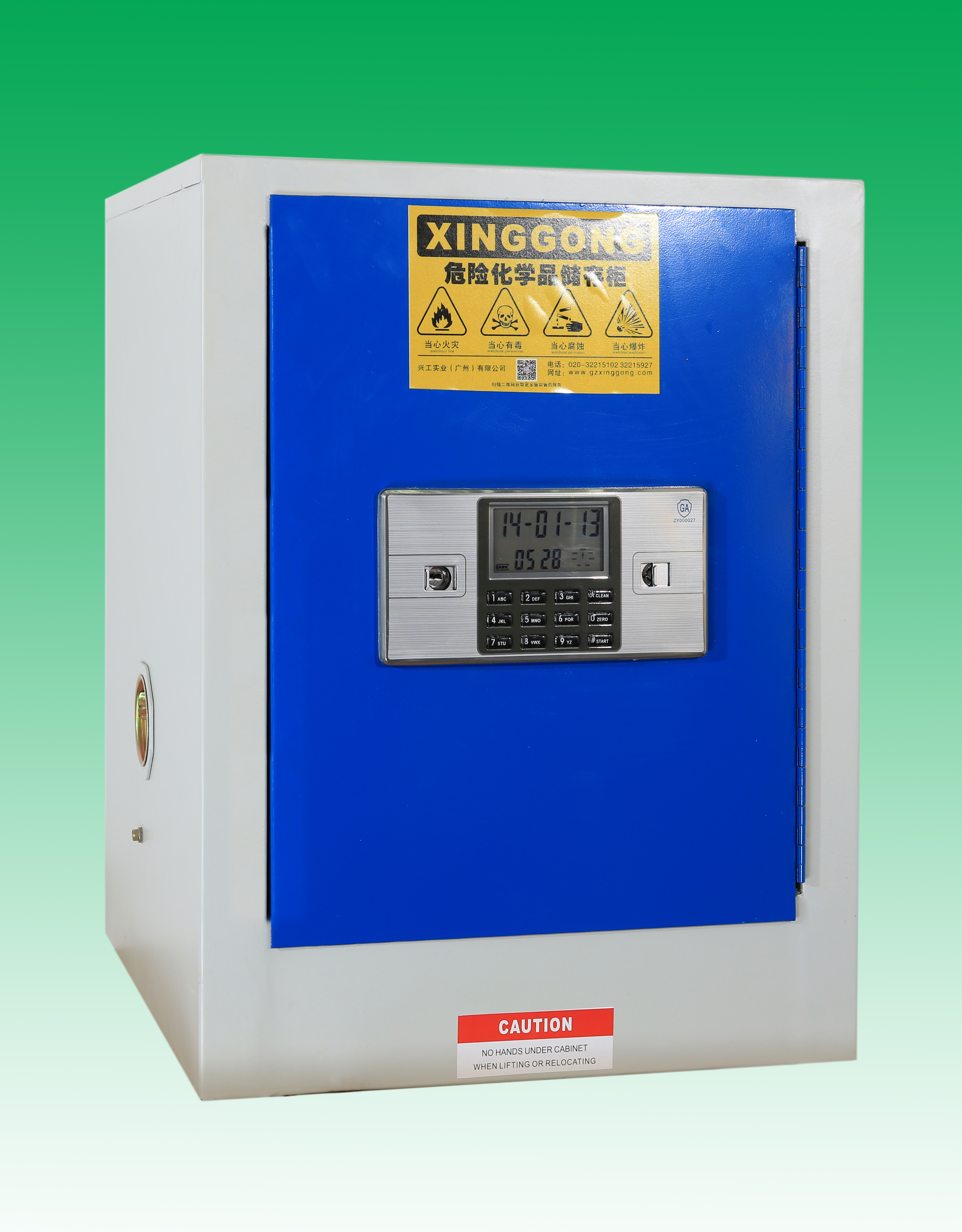 化學品存放柜用于存放甲苯,高錳酸鉀等易制毒的危化品的安全防護用品: 特點: 自動報警,當柜體產生劇烈震動或密碼連續輸錯3 次,密碼鎖會發出轟鳴聲自動報警,報警時間將持續 30 秒左右,如想立即解除報警,輸入正確密碼即可。 化學品存放柜技術參數: 1.全部采用雙層鋼板構造,耐沖擊;厚度1.20mm的優質鋼板經過點焊接,使用壽命更長,強度更好; 2.柜身全部酸洗磷化,環氧樹脂噴涂處理,可以耐受一定酸堿腐蝕; 3.配有電子密碼鎖和機械鎖雙鎖(另有指紋鎖,IC卡鎖可選); 4.獨特的耐腐蝕層板設計,有5厘米高的防漏液槽使意外流出的液體不外溢; 5.層板可上下自由調節方便存放大小不一的;罚 6.可選溫度控制系統,恒溫系統,可選柜身全耐腐蝕材質(請查看我公司恒溫毒試劑柜或耐強酸堿毒試劑柜)。 功能: 一:符合易制毒安全存儲要求雙人雙鎖管理。 二:保護毒物安全,免受盜竊丟失危害。 三:可選控溫功能,保護毒物安全。 安全建議: 您可以為您的安全儲存柜選配通風裝置或過濾裝置,可以將有害氣體及時過濾或者排出室外,保護工作人員安全! 化學品存放柜選型表:門板顏色可選:灰色 ,*藍 ,寶石藍 : 產品型號 容量/規范 產品規格(W*D*H) XGD12F 12加侖,單門,環氧樹脂噴涂,電子密碼鎖+機械鎖580mmW*460mmD*890mmH (獨有的耐腐蝕的PP槽型層板) XGD16F 16加侖,環氧樹脂噴涂,電子密碼鎖+機械鎖 580mmW*460mmD*1120mmH (獨有的耐腐蝕的PP槽型層板) XGD22F 22加侖,環氧樹脂噴涂,電子密碼鎖+機械鎖 890mmW*560mmD*890mmH (獨有的耐腐蝕的PP槽型層板) XGD24F 24加侖,環氧樹脂噴涂,電子密碼鎖+機械鎖 1090mmW*300mmD*1120mmH (獨有的耐腐蝕的PP槽型層板) XGD300F 30加侖,環氧樹脂噴涂,電子密碼鎖+機械鎖 1090mmW*460mmD*1120mmH (獨有的耐腐蝕的PP槽型層板) XGD450F 45加侖,環氧樹脂噴涂,電子密碼鎖+機械鎖 1090mmW*460mmD*1650mmH (獨有的耐腐蝕的PP槽型層板) XGD600F 60加侖,環氧樹脂噴涂,電子密碼鎖+機械鎖 900mmW*900mmD*1650mmH (獨有的耐腐蝕的PP槽型層板) XGD900F 90加侖,環氧樹脂噴涂,電子密碼鎖+機械鎖 1090mmW*900mmD*1650mmH (獨有的耐腐蝕的PP槽型層板) |