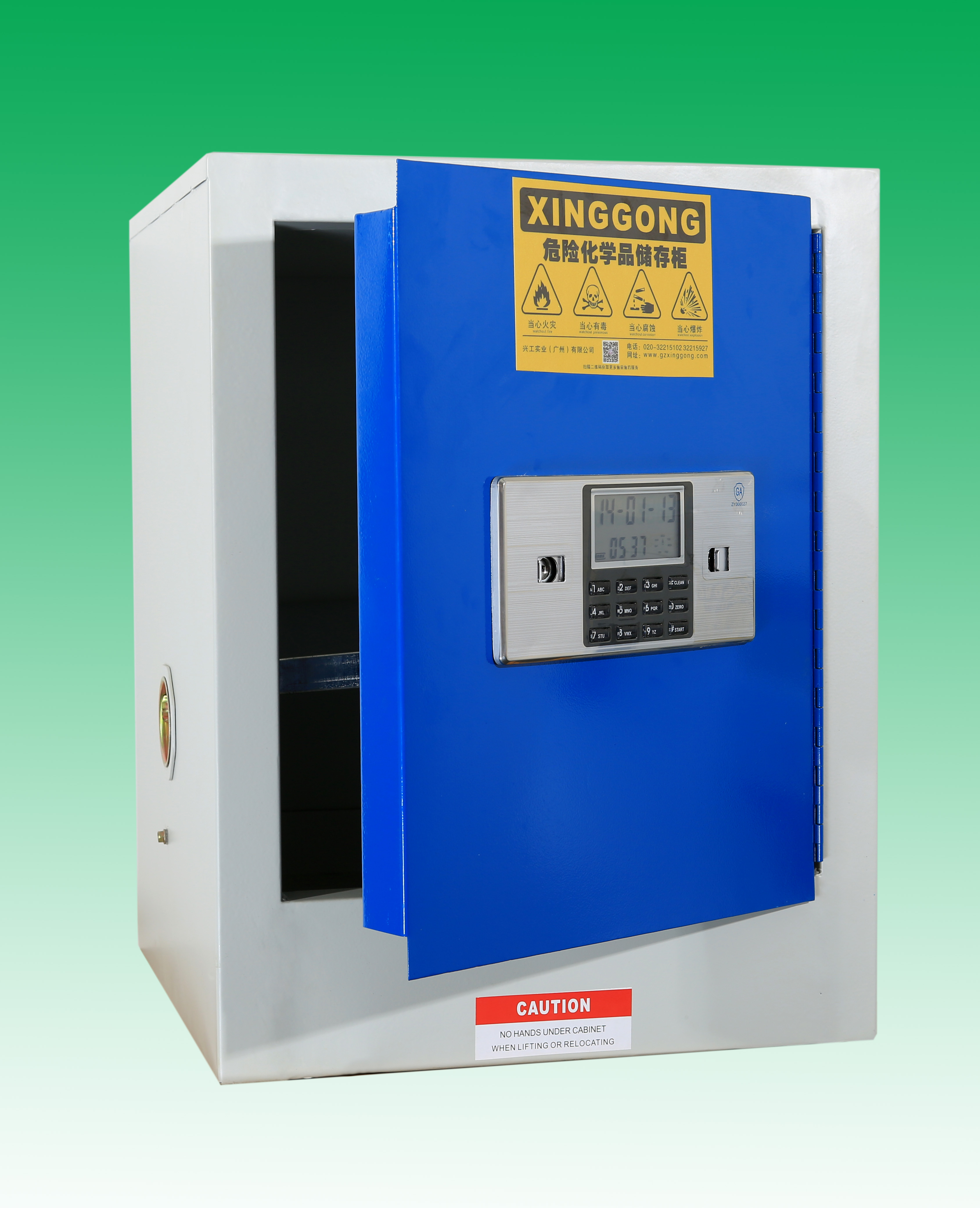 易制毒試劑柜用于存放甲苯,高錳酸鉀等易制毒的危化品的安全防護用品: 特點: 自動報警,當柜體產生劇烈震動或密碼連續輸錯3 次,密碼鎖會發出轟鳴聲自動報警,報警時間將持續 30 秒左右,如想立即解除報警,輸入正確密碼即可。 1.易制毒化學品儲存柜全部采用雙層鋼板構造,耐沖擊;厚度1.20mm的優質鋼板經過點焊接,使用壽命更長,強度更好; 2.柜身全部酸洗磷化,環氧樹脂噴涂處理,可以耐受一定酸堿腐蝕; 3.配有電子密碼鎖和機械鎖雙鎖(另有指紋鎖,IC卡鎖可選); 4.獨特的耐腐蝕層板設計,有5厘米高的防漏液槽使意外流出的液體不外溢; 5.層板可上下自由調節方便存放大小不一的危化品; 6.可選溫度控制系統,恒溫系統,可選柜身全耐腐蝕材質(請查看我公司恒溫毒試劑柜或耐強酸堿毒試劑柜)。 功能: 一:符合易制毒安全存儲要求雙人雙鎖管理。 二:保護毒物安全,免受盜竊丟失危害。 三:可選控溫功能,保護毒物安全。 安全建議: 您可以為您的安全儲存柜選配通風裝置或過濾裝置,可以將有害氣體及時過濾或者排出室外,保護工作人員安全! 易制毒試劑柜選型表:門板顏色可選:灰色 ,藍 ,寶石藍 : 產品型號 容量/規范 產品規格(W*D*H) XGD12F 12加侖,單門,環氧樹脂噴涂,電子密碼鎖+機械鎖580mmW*460mmD*890mmH (獨有的耐腐蝕的PP槽型層板) XGD16F 16加侖,環氧樹脂噴涂,電子密碼鎖+機械鎖 580mmW*460mmD*1120mmH (獨有的耐腐蝕的PP槽型層板) XGD22F 22加侖,環氧樹脂噴涂,電子密碼鎖+機械鎖 890mmW*560mmD*890mmH (獨有的耐腐蝕的PP槽型層板) XGD24F 24加侖,環氧樹脂噴涂,電子密碼鎖+機械鎖 1090mmW*300mmD*1120mmH (獨有的耐腐蝕的PP槽型層板) XGD300F 30加侖,環氧樹脂噴涂,電子密碼鎖+機械鎖 1090mmW*460mmD*1120mmH (獨有的耐腐蝕的PP槽型層板) XGD450F 45加侖,環氧樹脂噴涂,電子密碼鎖+機械鎖 1090mmW*460mmD*1650mmH (獨有的耐腐蝕的PP槽型層板) XGD600F 60加侖,環氧樹脂噴涂,電子密碼鎖+機械鎖 900mmW*900mmD*1650mmH (獨有的耐腐蝕的PP槽型層板) XGD900F 90加侖,環氧樹脂噴涂,電子密碼鎖+機械鎖 1090mmW*900mmD*1650mmH (獨有的耐腐蝕的PP槽型層板) |