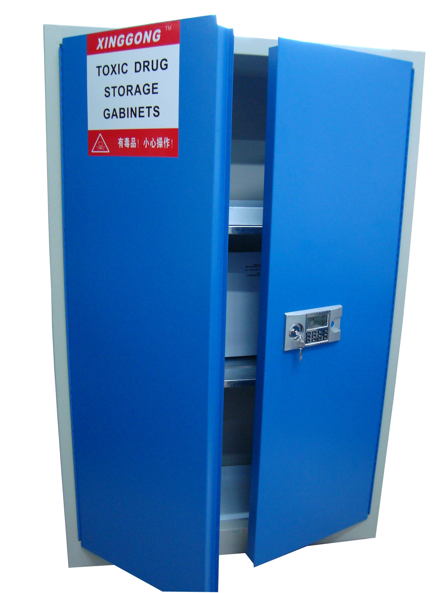 特點: 自動報警,當柜體產生劇烈震動或密碼連續輸錯3 次,密碼鎖會發出轟鳴聲自動報警,報警時間將持續 30 秒左右,如想立即解除報警,輸入正確密碼即可。 毒麻藥品柜技術參數: 1.全部采用雙層鋼板構造,耐沖擊;厚度1.20mm的優質鋼板經過點焊接,使用壽命更長,強度更好; 2.柜身全部酸洗磷化,環氧樹脂噴涂處理,可以耐受一定酸堿腐蝕; 3.配有電子密碼鎖和機械鎖雙鎖(另有指紋鎖,IC卡鎖可選); 4.獨特的耐腐蝕層板設計,有5厘米高的防漏液槽使意外流出的液體不外溢; 5.層板可上下自由調節方便存放大小不一的;; 6.可選溫度控制系統,恒溫系統,可選柜身全耐腐蝕材質(請查看我公司恒溫毒試劑柜或耐強酸堿毒試劑柜)。 功能: 一:符合易制毒安全存儲要求雙人雙鎖管理。 二:保護毒物安全,免受盜竊丟失危害。 三:可選控溫功能,保護毒物安全。 安全建議: 您可以為您的安全儲存柜選配通風裝置或過濾裝置,可以將有害氣體及時過濾或者排出室外,保護工作人員安全! 毒麻藥品柜選型表:門板顏色可選:灰色 ,藍 ,寶石藍 : 產品型號 容量/規范 產品規格(W*D*H) XGD12F 12加侖,單門,環氧樹脂噴涂,電子密碼鎖+機械鎖 580mmW*460mmD*890mmH (獨有的耐腐蝕的PP槽型層板) XGD16F 16加侖,環氧樹脂噴涂,電子密碼鎖+機械鎖 580mmW*460mmD*1120mmH (獨有的耐腐蝕的PP槽型層板) XGD22F 22加侖,環氧樹脂噴涂,電子密碼鎖+機械鎖 890mmW*560mmD*890mmH (獨有的耐腐蝕的PP槽型層板) XGD24F 24加侖,環氧樹脂噴涂,電子密碼鎖+機械鎖 1090mmW*300mmD*1120mmH (獨有的耐腐蝕的PP槽型層板) XGD300F 30加侖,環氧樹脂噴涂,電子密碼鎖+機械鎖 1090mmW*460mmD*1120mmH (獨有的耐腐蝕的PP槽型層板) XGD450F 45加侖,環氧樹脂噴涂,電子密碼鎖+機械鎖 1090mmW*460mmD*1650mmH (獨有的耐腐蝕的PP槽型層板) XGD600F 60加侖,環氧樹脂噴涂,電子密碼鎖+機械鎖 900mmW*900mmD*1650mmH (獨有的耐腐蝕的PP槽型層板) XGD900F 90加侖,環氧樹脂噴涂,電子密碼鎖+機械鎖 1090mmW*900mmD*1650mmH (獨有的耐腐蝕的PP槽型層板) |