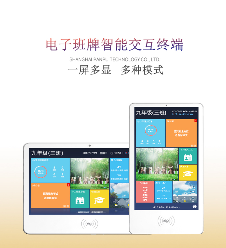 標準: 1、系統設置:常規模式、走班制模式、上課模式、考試模式、歡迎模式 2、權限管理 3、教室管理 4、班牌機管理 5、教師管理:老師管理 6、學生管理:虛擬班級、學生管理 7、簽到考勤:常規簽到、走班制簽到、簽到查詢、考勤統計 8、班級相冊:相冊展示、相冊管理 9、課程表:課程表展現、課程表管理 10、值日表:值日表展示、值日表管理 11、天氣預報:天氣預報展示、天氣預報管理 12、公告消息:公告展示、公告管理 13、個人信息 14、校園天地