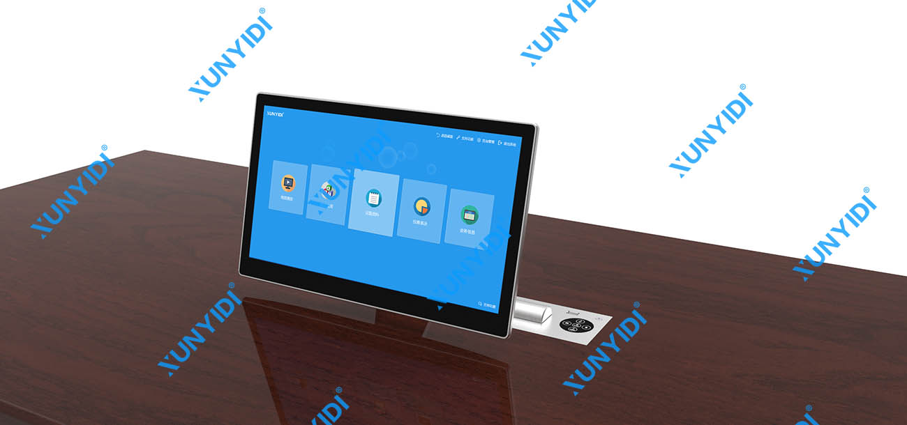 5、升降系統:嵌入式轉軸電動升降系統,自上而下順裝,面板尺寸420mm*88*4mm(長寬厚),內槽尺寸為410mm*80*600mm(長寬高),具有電源保護功能,產品支持RS-485通訊協議控制升降、仰俯