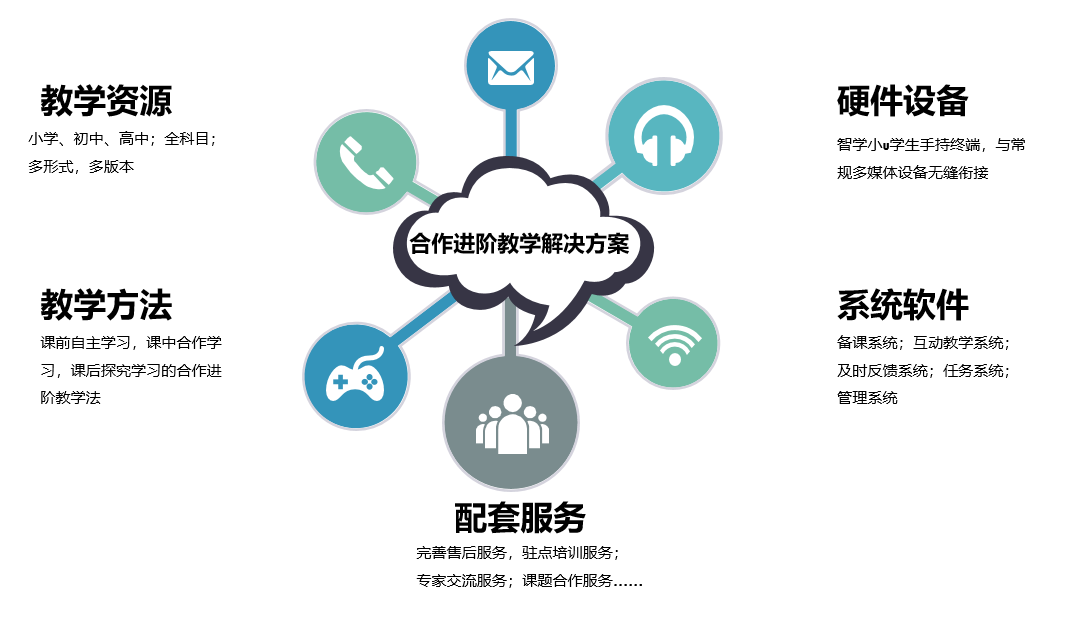 中小學(xué)合作進(jìn)階教學(xué)解決方案,是聚焦課堂教學(xué),通過U伴慧學(xué)智能教學(xué)平臺(tái)貫穿課前-課中-課后教學(xué)全流程,以培養(yǎng)高階思維能力和合作精神為目標(biāo)的中小學(xué)課堂解決方案。U伴慧學(xué)智能教學(xué)平臺(tái)是在北京師范大學(xué)張萍教授的指導(dǎo)下,依據(jù)合作進(jìn)階教學(xué)法,運(yùn)用先進(jìn)的云計(jì)算、大數(shù)據(jù)和人工智能技術(shù),將教學(xué)理念、教學(xué)方法、教學(xué)資源、教學(xué)過程與信息技術(shù)進(jìn)行深度融合,自主研發(fā)的集硬件終端、軟件應(yīng)用、云端數(shù)據(jù)和教學(xué)資源于一體的智能教學(xué)平臺(tái)。希望通過U伴慧學(xué)互動(dòng)高階課堂解決方案的綜合運(yùn)用,能重構(gòu)課堂教學(xué)環(huán)境,促進(jìn)教學(xué)內(nèi)容、課堂組織方式、能力培養(yǎng)重點(diǎn)等的課堂轉(zhuǎn)變。