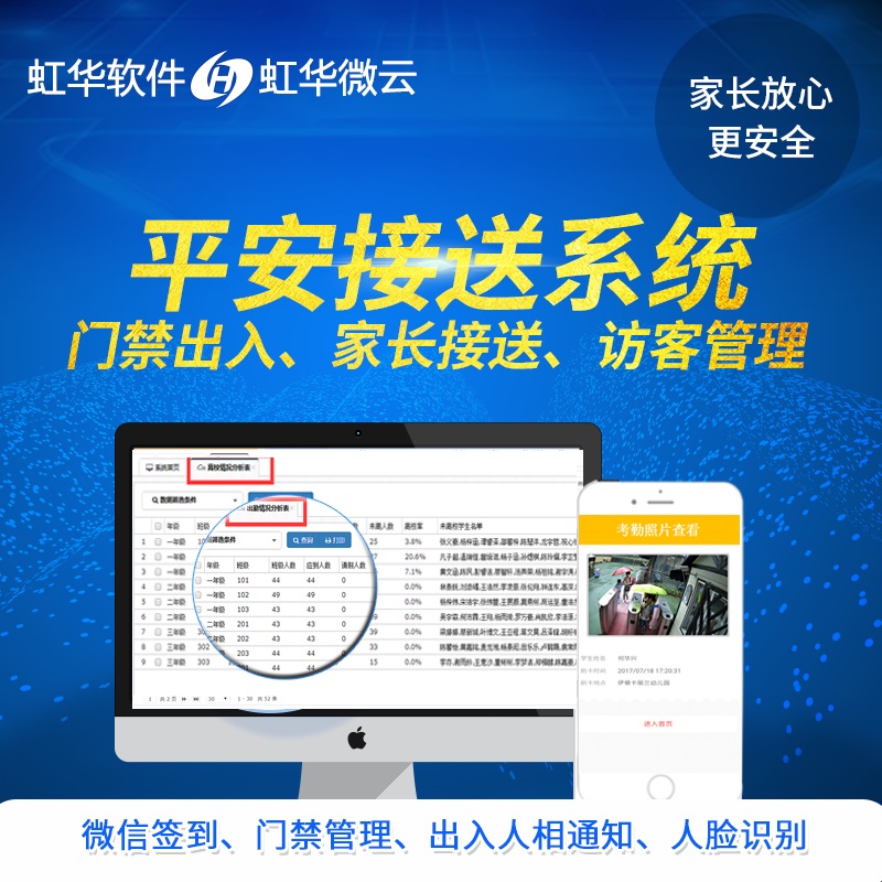 產品詳細介紹系統可設定多個通行權限,全面管控學生的出入時間、地點,刷卡同時推送抓拍圖至家長手機,實時掌控孩子的出入、異常情況。通過門禁通道,有效控制校內外人員的進出,實時查詢所有記錄和拍照記錄,明確學生在校內還是在校外,掌握學生的行蹤記錄。 系統告別紙質請假條的各種繁瑣流程,對學生請假規范化處理。 對于請假的學生開放自行出入權限,保安無需再次詢問,大大簡化學生請假流程和安保的工作,杜絕學生生臨摹老師簽字外出游玩造成不良影響,學生與學校責任分明,保障校園安全。 被訪人手機登記預約,到訪信息提醒; 系統查詢確認,授權臨時卡; 訪問結束,系統自動記錄來訪信息,如進出時間,被訪人姓名、號碼等 家長到校簽到,信息推送至 班主任;同步顯示至班級大屏幕 班主任通知學生離開教室后,發送信息告知家長; 委托他人接送時,保安有證可查,避免錯接等事故的發生; |