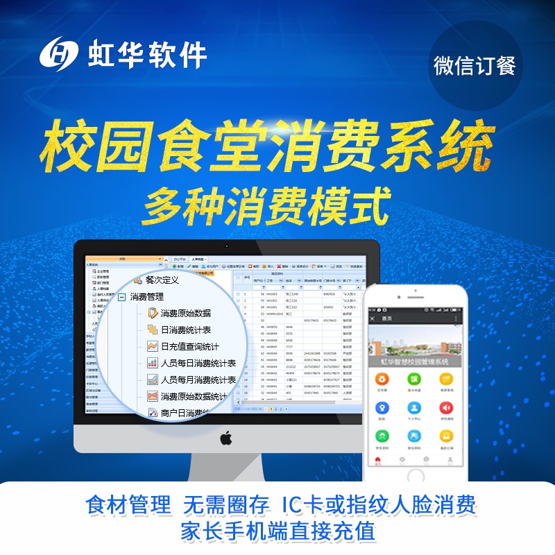 產(chǎn)品詳細(xì)介紹公司介紹 東莞虹華軟件科技有限公司是中國領(lǐng)先的智慧一卡通管理軟件。虹華以自主知識產(chǎn)權(quán)的發(fā)技術(shù)為核心,結(jié)合資深的行業(yè)應(yīng)用解決方案不斷推動和規(guī)范校園信息化管理,17年來以產(chǎn)品實(shí)用性和維護(hù)服務(wù)的持續(xù)保障讓企業(yè)客戶廣泛涉及全國各地各行業(yè)。公司先后通過“國家雙軟認(rèn)證企業(yè)”“廣東省民營科技企業(yè)”“高新技術(shù)企業(yè)”等認(rèn)證。 優(yōu)勢 互聯(lián)網(wǎng)架構(gòu) PC電腦端、平板、手機(jī)端優(yōu)秀的架構(gòu),讓你省時, 省力,省心。開啟餐飲業(yè)移動互聯(lián)新時代。 豐富的消費(fèi)模式 豐富的消費(fèi)模式 有效防止惡意消費(fèi),可根據(jù)企業(yè)制度實(shí)現(xiàn)日限次、餐限次、日限額、次限額等。可實(shí)現(xiàn)不定額∕次∕分時段等多種消費(fèi)模式,方便用戶使用,提高效率。管理卡、操作卡、消費(fèi)卡,各種卡有不同的管理操作權(quán)限,加強(qiáng)管理人員對消費(fèi)機(jī)的管理。根據(jù)管理人員及普通員工設(shè)定不同的用餐折扣,或用餐補(bǔ)貼。可數(shù)據(jù)實(shí)時消費(fèi)模式,時實(shí)了解消費(fèi)動態(tài)信息。可實(shí)現(xiàn)自定義月底清零或不清零設(shè)定。 多樣的預(yù)訂餐方式 可電腦PC端預(yù)訂餐,可手機(jī)微信端或平板電腦訂餐,可消費(fèi)機(jī)消費(fèi)機(jī)訂餐 ,可按早、中、晚餐次訂餐 ,可按湘菜、粵菜、浙菜菜品訂餐,減少浪費(fèi),方便快捷 便捷的充值功能 多種充值方式:現(xiàn)金充值/微信充值/工資直接劃扣,滿足單點(diǎn)充值多點(diǎn)食堂就餐的管理需求,首創(chuàng)的自動補(bǔ)貼,無需人工充值,銀行圈存至IC卡自助充值功能 后廚食材管理 虹華后廚食材管理,通過對后廚人員的管理,供應(yīng)商的管理,食材進(jìn)出庫的管理,有效控制后廚成本,保障食品安全。 支付管理 虹華充值支付管理,用戶在手機(jī)上就能完成對消費(fèi)卡的充值、查詢等一系列操作,后臺可對消費(fèi)模式進(jìn)行設(shè)置,并對所有充值記錄和支付數(shù)據(jù)進(jìn)行細(xì)分和匯總,便于管理方進(jìn)行數(shù)據(jù)分析。 多維度報表 商戶對帳報表,菜品分類統(tǒng)計(jì)報表,每日消費(fèi)明細(xì)表,月度消費(fèi)明細(xì)表 功能介紹 食堂就餐功能模塊有:餐次設(shè)定、菜品訂餐、餐次訂餐、消費(fèi)原始記錄,消費(fèi)報表統(tǒng)計(jì)查詢。 校園可以按餐,按次或者根據(jù)每天到校的人數(shù)進(jìn)行合理的膳食安排。也可以實(shí)現(xiàn)手機(jī)訂餐,菜品查詢訂餐,大大提高學(xué)生在校的生活體驗(yàn),食堂可以根據(jù)訂餐的數(shù)量進(jìn)行合理安排膳食從而減少浪費(fèi)。 1.食堂消費(fèi)模塊 計(jì)次定額消費(fèi)(現(xiàn)場點(diǎn)餐),自由消費(fèi)(自選不同價位菜式),折扣消費(fèi)(內(nèi)部員工價和無折扣價) 2.預(yù)定餐模塊 互聯(lián)網(wǎng)預(yù)訂,手機(jī)微信預(yù)訂,訂餐機(jī)定餐 3.充值模塊 現(xiàn)金充值,微信充值,工資直接劃扣,雙錢包補(bǔ)貼 4.多維度報表 商戶對帳報表菜品分類統(tǒng)計(jì)報表,每日消費(fèi)明細(xì)表,月度消費(fèi)明細(xì)表 5.供應(yīng)鏈模塊(ERP) 反算原材料,食品溯源,進(jìn)銷存管理 6.可擴(kuò)充一卡通 多食堂統(tǒng)一管理,集成企業(yè)內(nèi)部人事考勤工資門禁一卡通功能 7.支持多種品牌的機(jī)器設(shè)備:刷卡機(jī)、指紋機(jī)、人臉機(jī) |