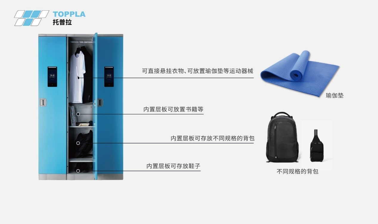 托普拉化身“智能管理者”,以全塑儲物柜為載體,增加人臉識別、刷卡等智能系統,智能守護,輕裝上陣。