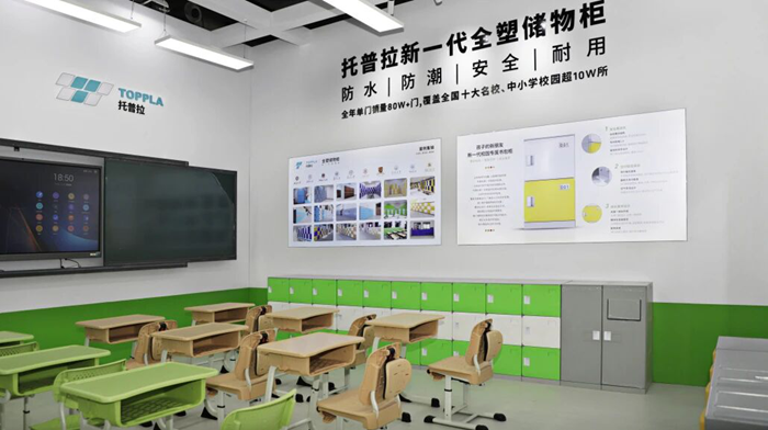 除核心的教室場景外,托普拉更將全塑儲物柜的應用延伸至校園多維場景,打造 “教、學、住、管” 全覆蓋的存儲方案,成為展會期間的另一大亮點。