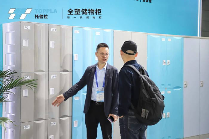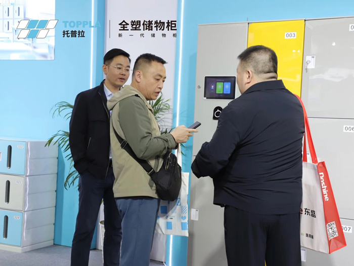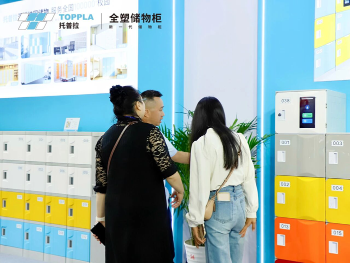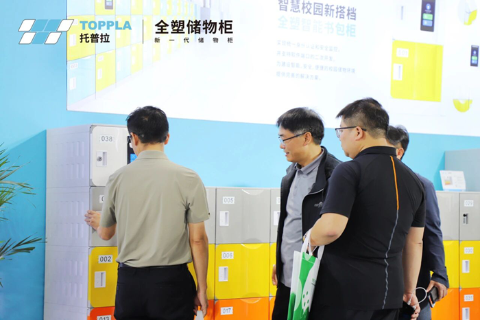 同時,托普拉以全場景儲物需求為基,積極響應數字化校園建設號召,將物聯網、生物識別等前沿技術深度融入全塑儲物柜產品中,現場帶來了人臉識別、掌靜脈等智能儲物柜體驗,備受關注。