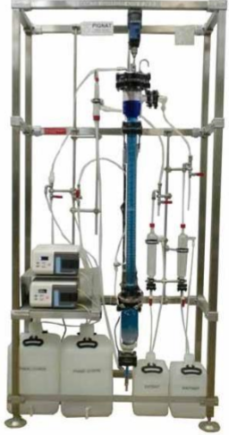 產品詳細介紹 不含易燃溶劑或有機化合物的液-液萃取工藝 揮發吸附法回收相 2模塊連接: 攪拌式液-液萃取 固液吸附 用再生劑包進行清潔工藝 僅水溶劑 回收解決方案 安全生物可降解 三元圖的使用 物料平衡 塔效率的測定 通用規范 攪拌式液-液萃取ELA/3000 2個蠕動泵,集成開/關。 2個玻璃傾析器。 玻璃塔,H=1 m,ND50。 攪拌軸,由27 不銹鋼 RSUSTON型攪拌機、變頻電機組成。 4個采樣端口。 活性炭吸附-MAD/1000 電路選擇三通閥。 計量齒輪泵。 2個吸附不銹鋼盒,0.2 L,不銹鋼用活性炭包裝。 2個儲罐,5 L和20 L。