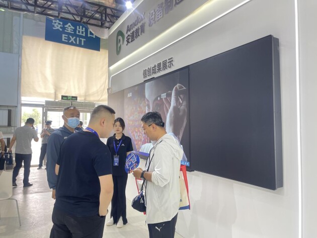 此次展會展出了智能交互平板新產品S3+系列110寸結合了多種教學設備于一體,能夠更好地滿足當前新型人才創新教育的新需求,4K高清畫面輸出,優質的試聽體驗,全功能接口升級、桌面快速小工具、NFC快速投屏等功能設計結合安道教育自主研發的多款應用軟件及工具,可以輕松實現多維度互動教學。展會現場呈現智慧大屏黑板一體機形態雙屏模式,結合安道教育自研軟件,實現雙屏同時展示、翻頁、批注等功能,為課堂互動提供更多的展示形式,讓課堂互動更活躍。
