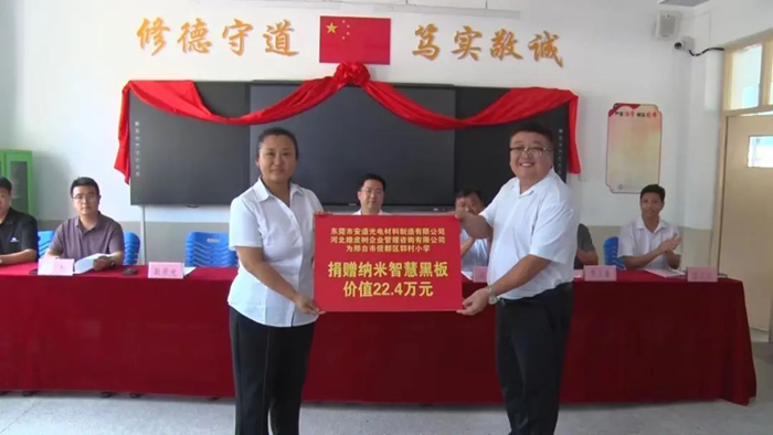 耿東光表示,安道教育此次向信都區(qū)郭村小學(xué)捐贈智慧黑板不僅是幫助‘郭守敬故里’郭村小學(xué)改造提升,更是安道教育回饋社會的具體表現(xiàn)。安道教育自成立以來,始終致力于為教育行業(yè)提供高品質(zhì)、創(chuàng)新性的教育裝備產(chǎn)品和服務(wù),能有今日之成就,離不開社會各界的大力支持。希望通過這個捐贈活動,來表達(dá)安道教育回饋社會的愛心,帶動更多有社會責(zé)任的企業(yè)和愛心人士加入到回饋社會活動中來。